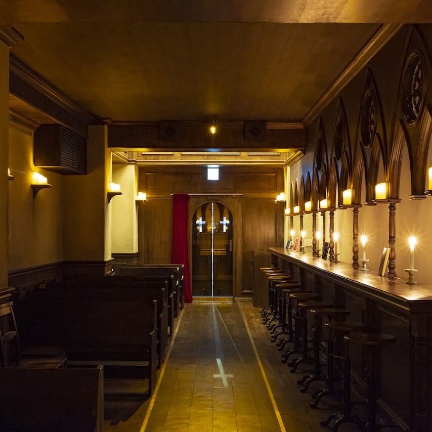 イベントレンタル料金 キャパ:着席50人、スタンディング200人 会場のご利用時間については要相談。 朝5時まで毎日Bar「The Church」としてバー営業しております。 アコースティックライブ、DJなど各種パーティミロンガ、公演会、試写会、ギャラリーなどにご利用ください。 イベント詳細 道玄坂教会/DOGENZAKA CHURCH