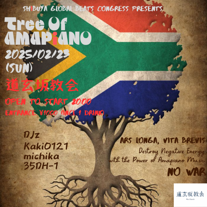 [ 入場無料 ] Tree Of Amapiano2025年2月17日|By church 2025年2月23日 2/23 (Sun) Tree Of Amapiano [ DJ ] Kaki0121 michika 35DH-1 [ TimeTable ] 20:00 – OPEN / START 05:00 – CLOSE [ System ] Entrance FREE