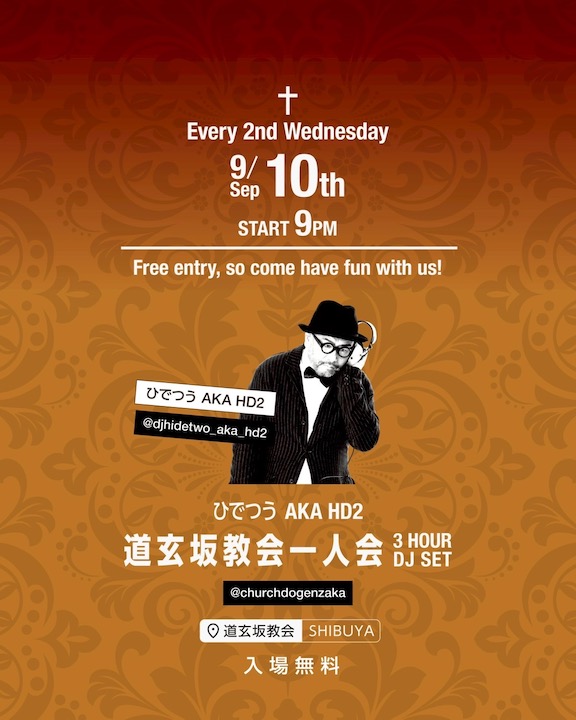 [ 入場無料 ] 道玄坂教会一人会2025年9月7日|By staff 2025年9月10日 9/10(Wed) 道玄坂教会一人会 [ DJ ] ひでつう AKA HD2 [ TimeTable ] 20:00 – OPEN 21:00 – START 03:00 – BarTime 05:00 – CLOSE [ System ] Entrance FREE