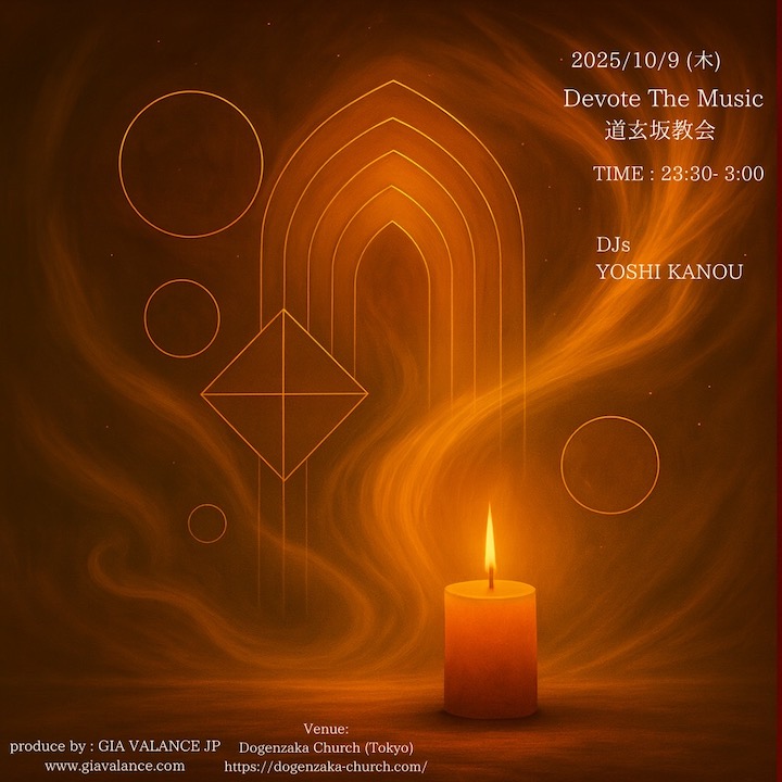 [ 入場無料 ] Devote The Music2025年10月3日|By staff 2025年10月9日 10/9(Thu) Devote The Music [ DJ ] YOSHI KANOU [ TimeTable ] 20:00 – OPEN / START 24:00 – Devote the Music 03:00 – BarTime 05:00 – CLOSE [ System ] Entrance FREE