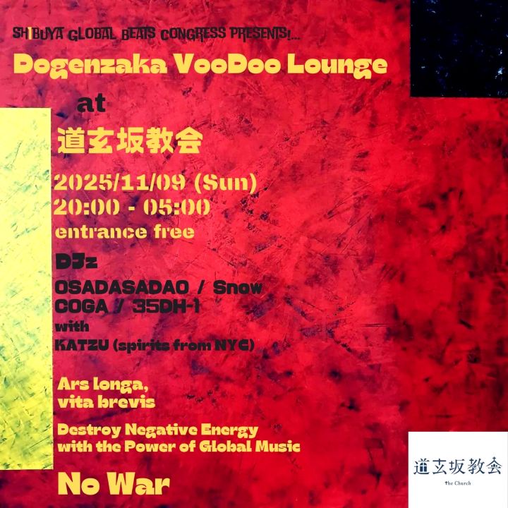 [ 入場無料 ]Dogenzaka VooDoo Lounge2025年10月31日|By staff 2025年11月9日 11/09(Sun) Dogenzaka VooDoo Lounge [ DJ ] OSADASADAO Snow COGA 35DH-1 KATZU (spirits from NYC) [ TimeTable ] 20:00 – OPEN / START 05:00 – CLOSE [ System ] EntranceFREE