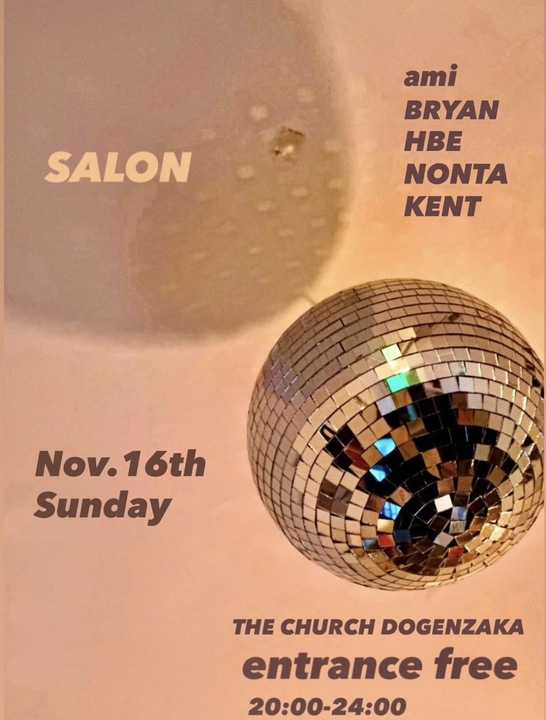 [ 入場無料 ] SALON2025年11月12日|By staff 2025年11月16日 11/16 (Sun) SALON [ DJ ] ami BRYAN HBE NONTA KENT [ TimeTable ] 20:00 – OPEN / START 24:00 – Devote the Music 05:00 – CLOSE [ System ] Entrance FREE