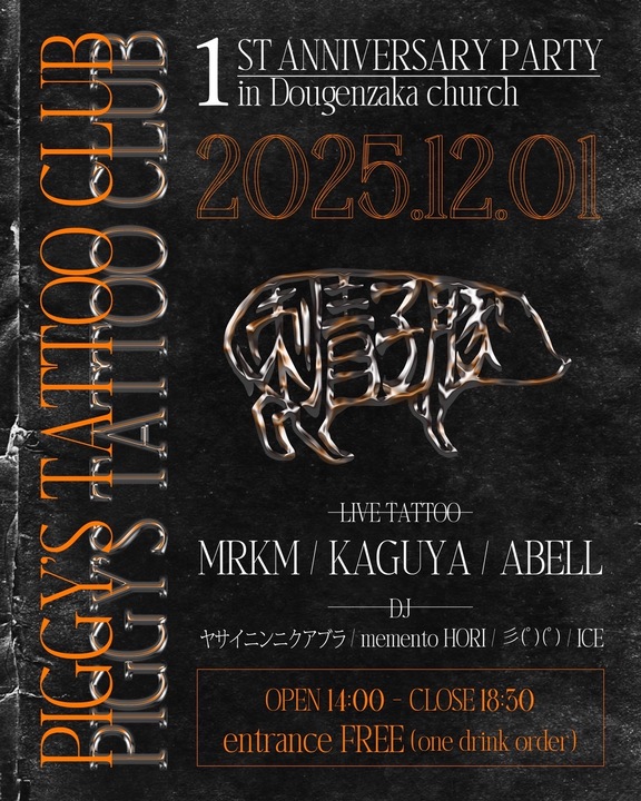[ 入場無料 ] PIGGY’S TATTOO CLUB 1st anniversary party