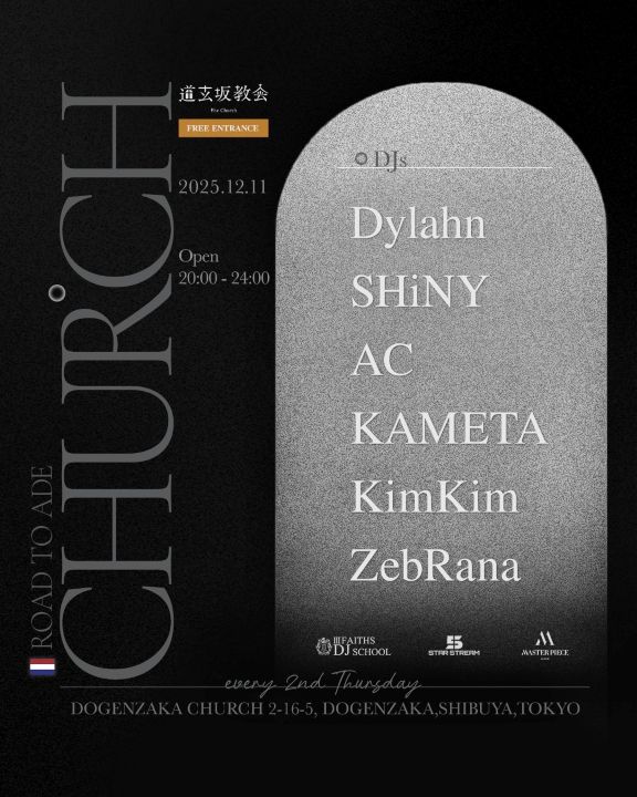 [ 入場無料 ] ROAD TO ADE2025年11月27日|By staff 2025年12月11日 12/11(Thu) ROAD TO ADE [ DJ ] Dylahn SHiNY AC KAMETA KimKim ZebRana [ Time Table ] 20:00 – OPEN / START 24:00 – Devote The Music 03:00 – BarTime 05:00 – CLOSE [ System ] Entrance FREE
