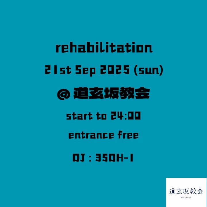 [ 入場無料 ] rehablitation2025年9月21日|By staff 2025年9月21日 9/21(Sun) rehablitation [ DJ ] 35DH-1 [ TimeTable ] 20:00 – SALON 24:00 – rehablitation 05:00 – CLOSE [ System ] Entrance FREE