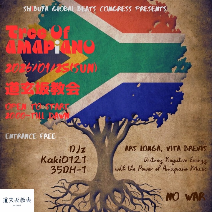 [ 入場無料 ] Tree Of AMAPiANO2026年1月20日|By staff 2026年1月25日 1/25(Sun) Tree Of AMAPiANO [ DJ ] Kaki0121 35DH-1 [ TimeTable ] 20:00 – OPEN / START 03:00 – Bar Time 05:00 – CLOSE [ System ] Entrance Free