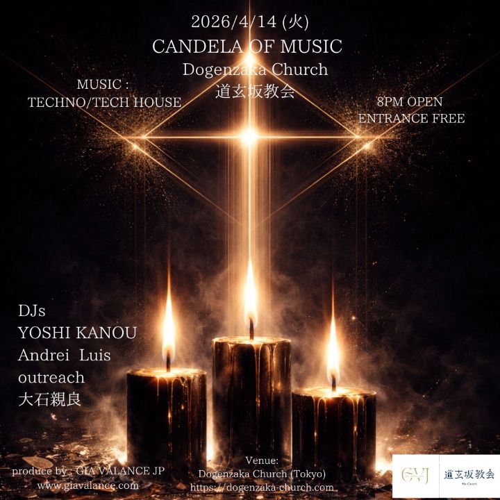 [ 入場無料 ] CANDELA OF MUSIC2026年4月3日|By staff 2026年4月14日 04/14(Tue) CANDELA OF MUSIC [ DJ ] YOSHI KANOU Andrei Luis outreach 大石親良 [ TimeTable ] 20:00 – OPEN / START 05:00 – CLOSE [ System ] EntranceFREE